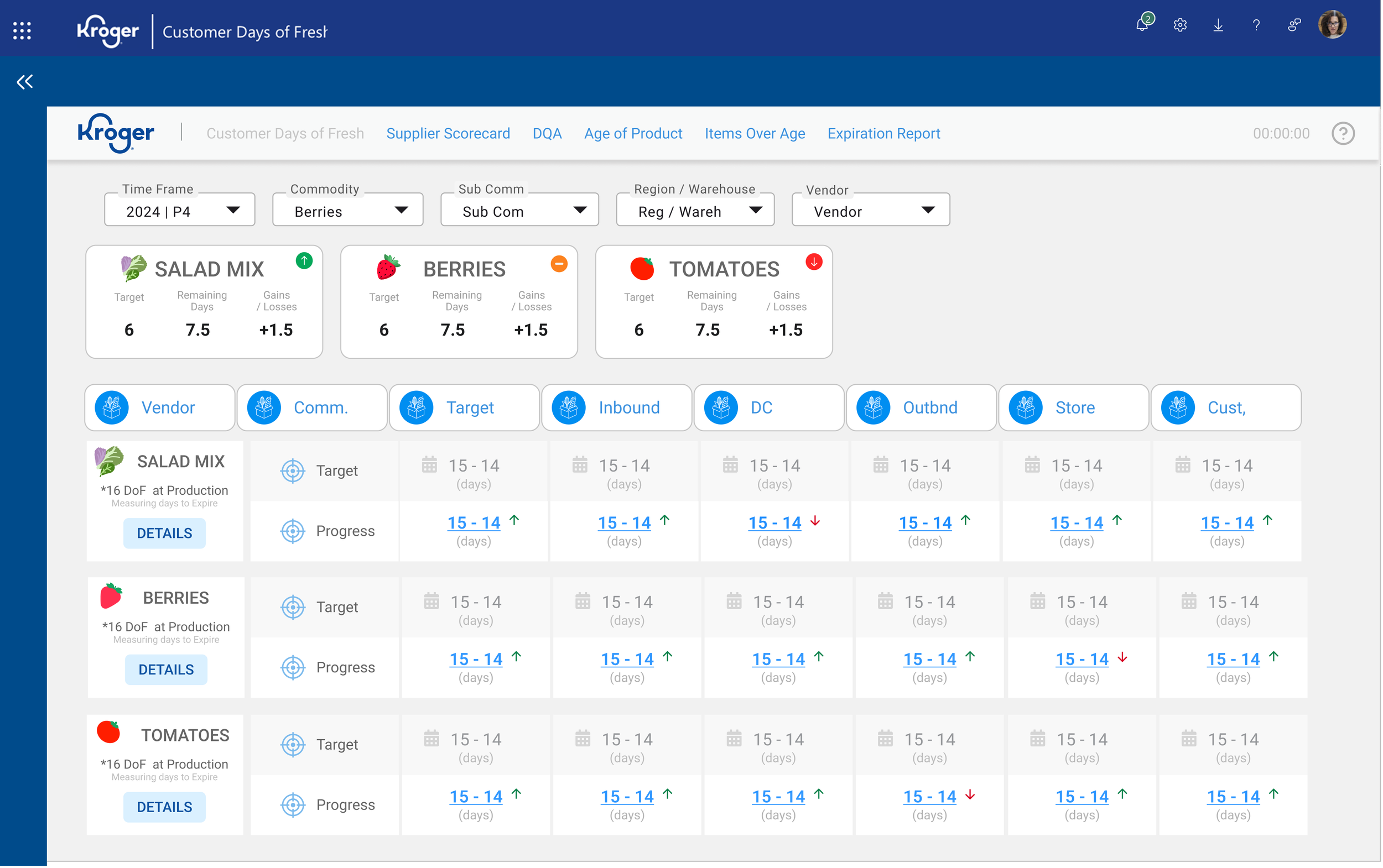 Users needed a way to track the produce lifecycle to better understand where the company was having a challenge to maintain freshness. This data tracker would display the day the customer picked the produce to all the way to when it gets to the store and estimate to customer.