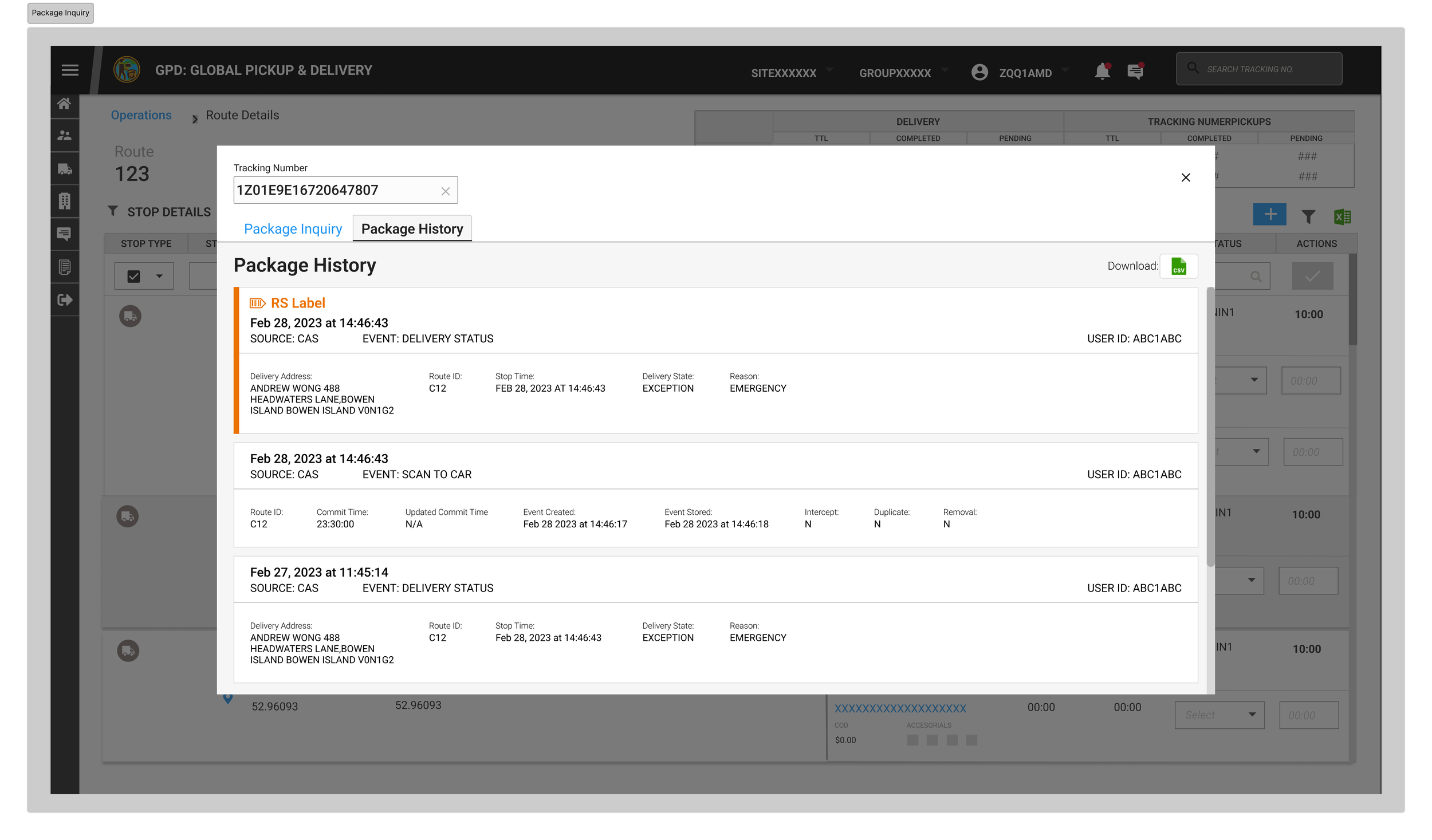 Created a more intuitive tab view for both inquiry and history making a clear data visualization along with easy navigation for details, history and route information using tabs.